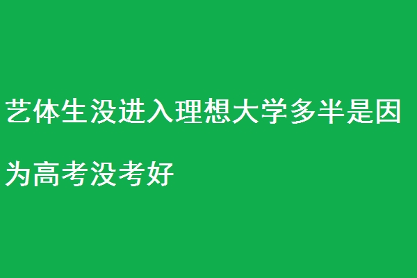艺体生没进入理想大学 多半是因为高考没考好,艺考2,左马艺考,艺考压肩艺考生最终的大学录取,不单单只要专业课过关就可以。其实对于艺体生来说,高考和艺考是一样重要的。艺术生的高考和普通学生的高考一样,拼的都是文化课的成绩。